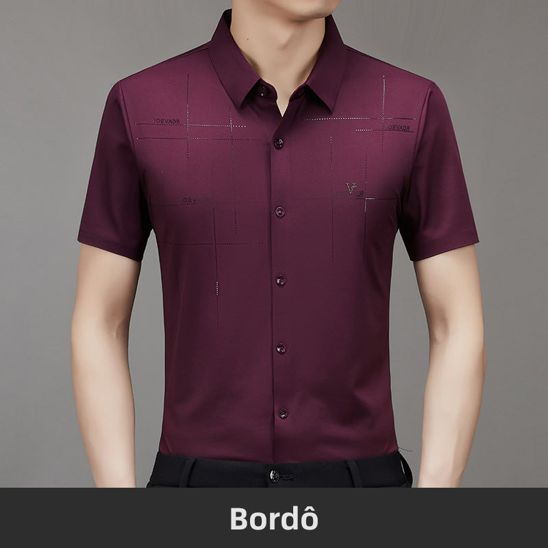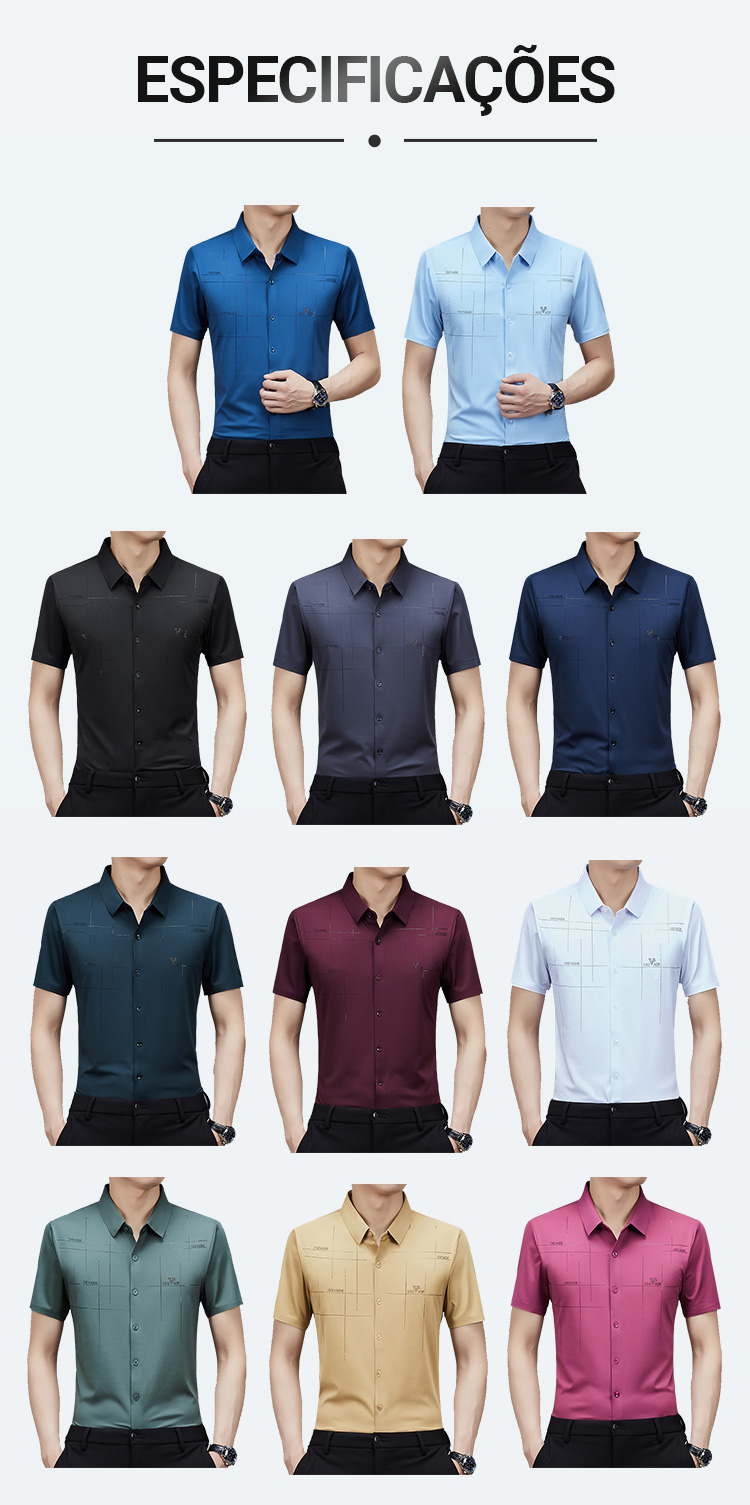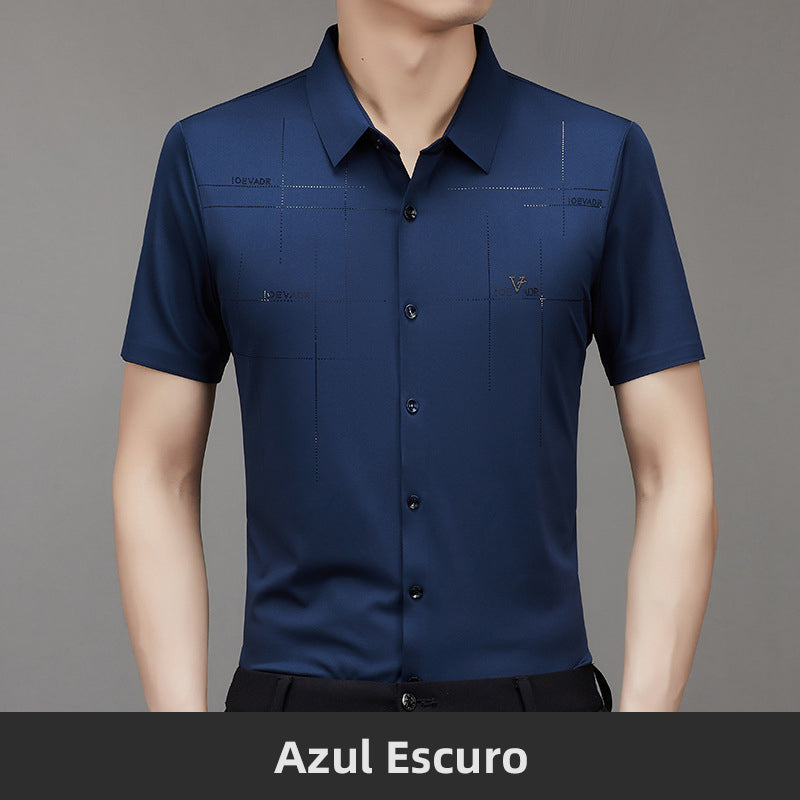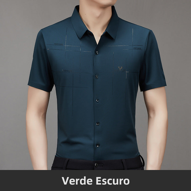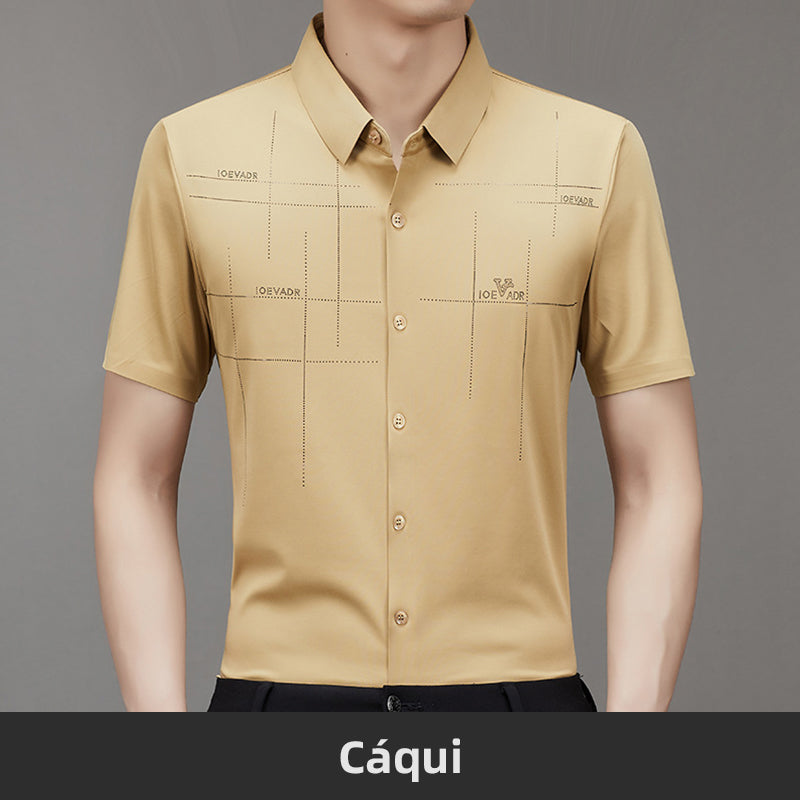 Camisa de Negócios Masculina de Verão Fresca e Elástica