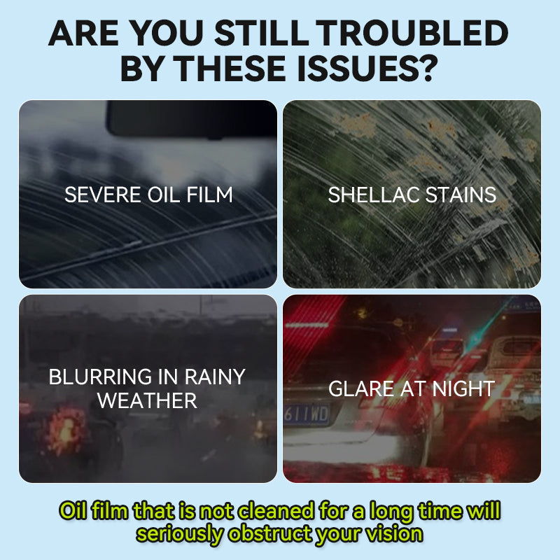 REMOCÃO POTENTE DE ÓLEO: Remove eficazmente películas oleosas persistentes, graxa e sujeira das estradas dos para-brisas e espelhos. Restaura a transparência e clareza do vidro do carro, proporcionando melhor visibilidade e segurança durante a chuva, neblina ou à noite.