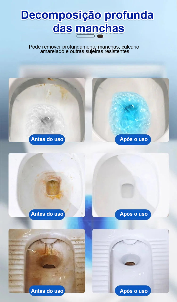 AÇÃO DESINCRUSTANTE PODEROSA - Nosso Bastão de Limpeza de Vaso Sanitário Concentrado é formulado com uma mistura de alta potência de agentes de limpeza projetados para combater e dissolver calcário persistente, depósitos minerais e manchas de água dura. A tecnologia desincrustante avançada penetra e quebra os acúmulos mais difíceis, garantindo uma limpeza completa a cada uso.