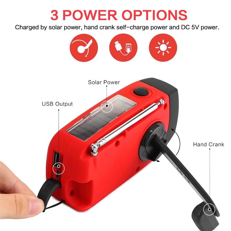 CARREGAMENTO MÚLTIPLO: Mantenha-se carregado em uma emergência graças a várias opções de carregamento, incluindo um dínamo interno, um painel solar e carregamento USB. Você não precisa mais se preocupar com uma bateria descarregada quando mais precisa dela.