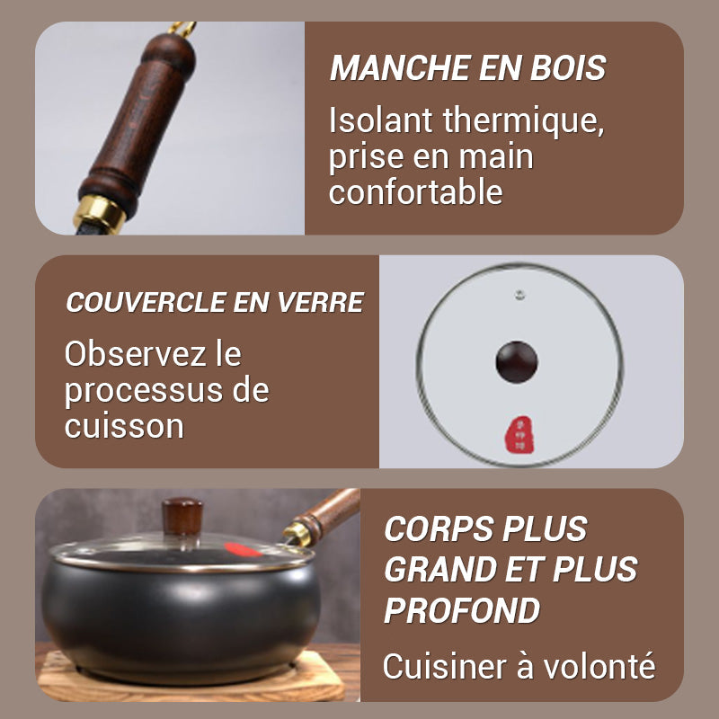 Esta panela de ferro fundido pesa apenas 1,2 kg (equivalente a duas garrafas de ĂĄgua mineral), 40% menos que as panelas de ferro fundido tradicionais. Graças ao design ergonĂŽmico, vocĂȘ pode preparar refogados com facilidade â atĂ© mesmo meninas podem usĂĄ-la sem problemas!